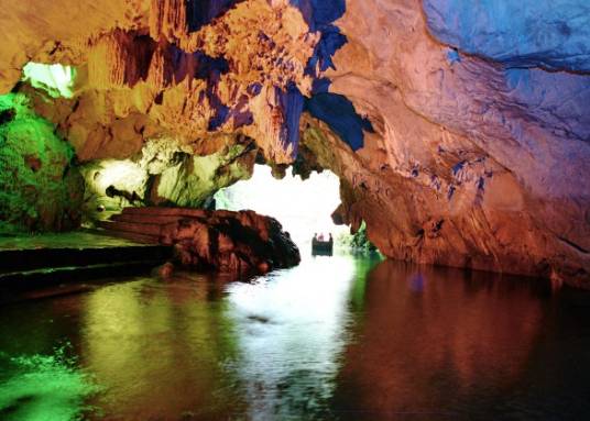 魚龍洞,與太平湖衣袂相連,距舉世聞名的黃山50公里,距佛教勝地九華山25公里,魚龍洞洞口如張開的鱷魚嘴,一泓碧水淙淙而出,終年不涸。該洞全長(zhǎng)5000余米,有清澈的地下河貫穿始終,初極窄,復(fù)開闊,氣勢(shì)磅礴,宏偉觀,洞內(nèi)奇石紛列,形態(tài)各異,或如蓮花綻放,或如玉樹臨風(fēng),或如眾僧朝圣,或如鐘鼓盤地,極為傳神,有東海、南海、北海、西海“四!埃吧徎▽m、月宮、慶喜宮、鯉魚宮、玉寢宮、白鱔宮、點(diǎn)將臺(tái)、犀牛宮、藏樂宮、天宮、聚寶宮”十一宮“,2014年5月新增了走路進(jìn),坐船出項(xiàng)目,使得游人既可徒步瀏覽,又可乘木舟漫游,奇妙的景色與水聲、波光、燈影交織成一團(tuán),撲朔迷離,意趣橫生。