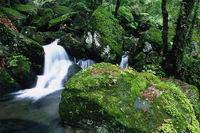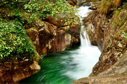 牯牛降雨量充沛,溪流縱橫,溪水常流不斷,潺潺流水,從山頂淙淙而下,遇有石壁斷崖,飛瀉直下形成一道道水瀑,大的如銀河落九天,空谷轟鳴,水汽升騰;小的似白練輕垂,涓涓細(xì)流,如泣如訴。十步一小瀑,百步一大瀑,飛瀑相連,蔚為壯觀。溪流碧綠清澈,時(shí)深時(shí)淺,時(shí)緩時(shí)急,在山間林里穿行,每遇石凼平地,則形成一個(gè)個(gè)大小不一的清潭,晶瑩剔透,異彩紛呈,如同一塊塊翡翠,每至雨季,潭瀑相應(yīng),山色朦朧,如一幅幅墨染的山水圖畫(huà)。
