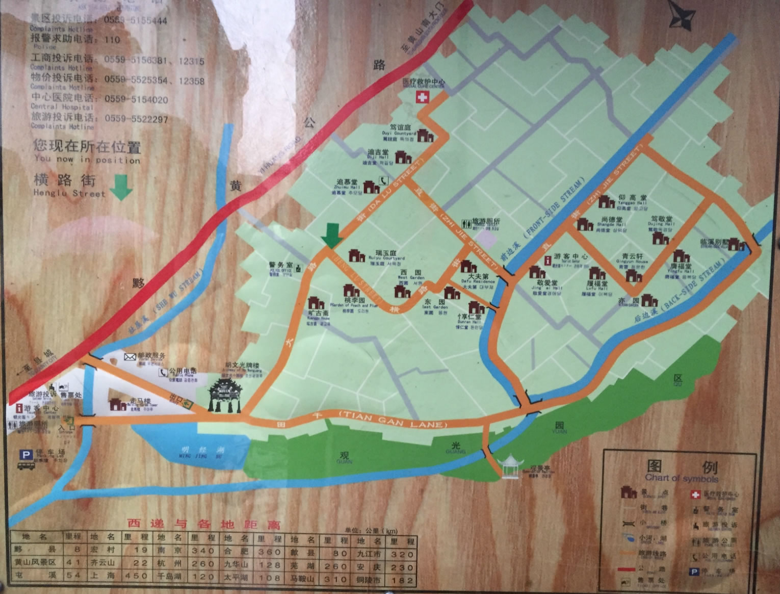 西遞、宏村古民居位于中國東部安徽省黟縣境內(nèi)的黃山風(fēng)景區(qū)。宏村始建于南宋紹興年間(公元1190—1194年),原為汪姓聚居之地,綿延至今已有800余年。它背倚黃山余脈羊棧嶺、雷崗山等,地勢較高,經(jīng)常云蒸霞蔚,有時(shí)如濃墨重彩,有時(shí)似潑墨寫意,真好似一幅徐徐展開的山水長卷,因此被譽(yù)為“中國畫里的鄉(xiāng)村”。著名景點(diǎn)有南湖風(fēng)光、南湖書院、月沼春曉、牛腸水圳、雙溪映碧、亭前大樹、雷崗夕照、樹人堂、明代祠堂樂敘堂等。南宋紹興年間,古宏村人為防火灌田,獨(dú)運(yùn)匠心開仿生學(xué)之先河,建造出堪稱“中國一絕”的人工水系,是當(dāng)今“建筑史上一大奇觀”:巍峨蒼翠的雷崗為牛首,參天古木是牛角,由東而西錯(cuò)落有致的民居群宛如龐大的牛軀。引清泉為“牛腸”,經(jīng)村流入被稱為“牛胃”的月塘后,經(jīng)過濾流向村外被稱作是"牛肚"的南湖。人們還在繞村的河溪上先后架起了四座橋梁,作為牛腿。這種別出心裁的科學(xué)的村落水系設(shè)計(jì),不僅為村民解決了消防用水,而且調(diào)節(jié)了氣溫,為居民生產(chǎn)、生活用水提供了方便,創(chuàng)造了一種"浣汲未防溪路遠(yuǎn),家家門前有清泉"的良好環(huán)境。