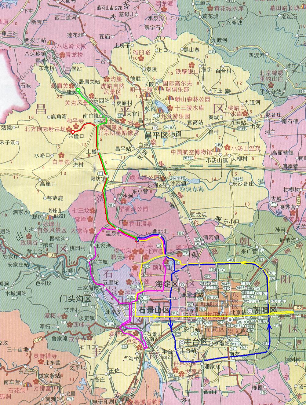 。。有著明顯四季更迭變化的北京,將時刻為您帶來美的感受。春的柔順與明麗,夏的嫵媚與多情,秋的成熟與風韻,冬的純潔與晶瑩。她豐富的地貌特征,讓您穿林越谷,感受漂流與攀巖的刺激。在北京熙來攘往的城區(qū)之外,不出幾十公里,便是一派田園風貌:數條河流縱情奔淌,千道峽谷雄奇幽深,崇山峻嶺云霧繚繞,密林草甸空氣清新,更有讓人魂牽夢繞,永不厭倦的莽莽長城……娛樂項目更是花樣翻新:登山探險、野炊宿營、驅車越野、徒步旅行、策馬揚鞭、水中怡情等等,無論您是滑山(滑道)、滑水、滑冰、滑草亦或是滑雪,無論您想游水、游街、游空氣(滑翔傘、蹦極),總之,只要您是想不留下終身憾事,那就快來吧!北京的八個城區(qū)和十個遠郊區(qū)縣,時刻等待您的光臨!