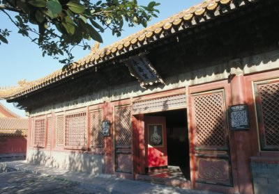 景陽宮,為內(nèi)廷東六宮之一,位于鐘粹宮之東、永和宮之北。明永樂十八年(1420年)建成,初名長陽宮,嘉靖十四年(1535年)更名景陽宮。明代為嬪妃所居。清代改作收貯圖書之地。宮為二進(jìn)院,正門南向,名景陽門,前院正殿即景陽宮,面闊3間,黃琉璃瓦廡殿頂,與東六宮中其它五宮的屋頂形式不同。后院正殿為御書房,面闊5間,明間開門,黃琉璃瓦歇山式頂。次、梢間為檻墻、檻窗,檐下施以斗栱,飾龍和璽彩畫。東西六宮年節(jié)張掛的《宮訓(xùn)圖》原收藏于此。
