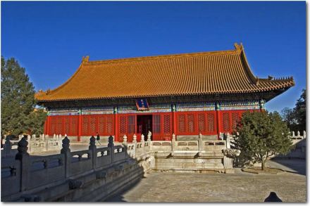 在故宮“內(nèi)庭”最后面。重檐廡殿頂。坤寧宮是明朝及清朝雍正帝之前的皇后寢宮,兩頭有暖閣。清代改為祭神場所。雍正后,西暖閣為薩滿的祭祀地。其中東暖閣為皇帝大婚的洞房,康熙、同治、光緒三帝,均在此舉行婚禮。