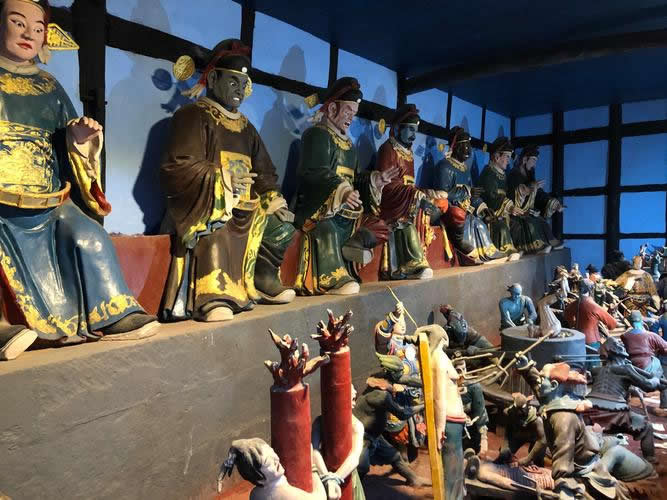 “鬼城”匯集了自唐代以來的各類建筑、雕塑、繪畫作品,集中表現(xiàn)了豐富的東方鬼神文化,將神話傳說中的陰曹地府、十八層地獄通過民族建筑的形式展現(xiàn)在人們面前,具有很高的歷史文化價(jià)值。