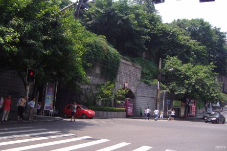 通遠(yuǎn)門建于明洪武初年,位于重慶老城的正西方,甕門東北向,正門橫書“克壯千秋”四字;其甕城門上書“通遠(yuǎn)門”三字,因通遠(yuǎn)門是古代重慶通往四川其它地區(qū)等地的起點,故名之曰“通遠(yuǎn)”。