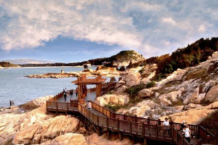濱海木棧道是風動石景區(qū)近年來投入開發(fā)的臨海棧道,供游人近距離感觸海洋魅力,欣賞海蝕景觀。