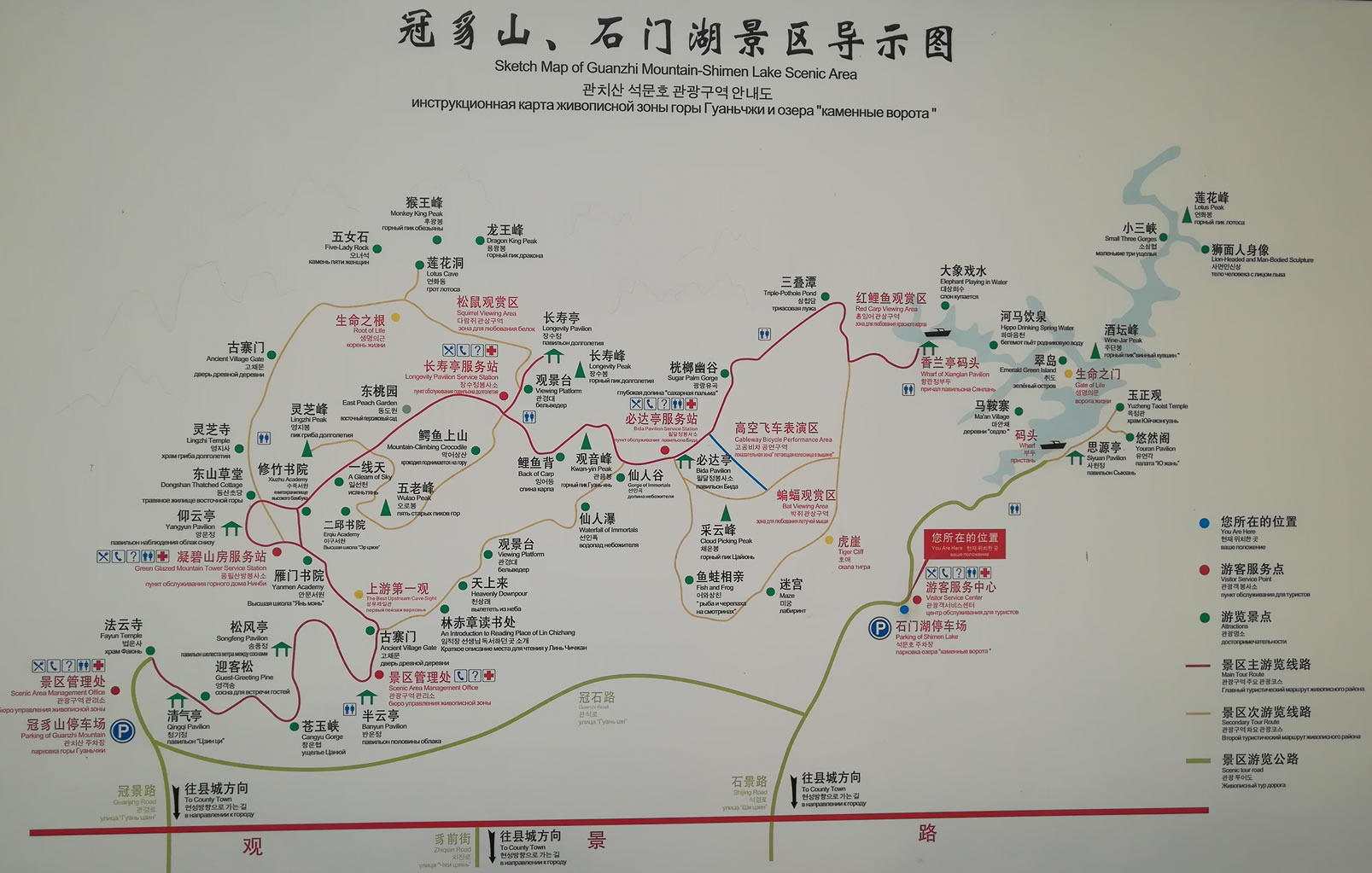 共有蜘蛛巖、水上金字塔、鄂魚峰、金鼠巖、九龍獻(xiàn)瑞、佛洞、八仙巖等景點(diǎn)20多處,是冠豸山風(fēng)景區(qū)又一顆璀璨明珠。 九龍湖內(nèi)港汊眾多,彎彎曲曲,處處是“水上迷宮”,曲徑通幽,是一個(gè)珊瑚狀的湖泊,而主要有四大龍溏坑、飛龍坑、九龍灣坑和碧螺坑。主要景點(diǎn)有: 九龍獻(xiàn)瑞:位于大壩口,九條如巨龍走勢(shì)的山脈齊聚于次,而其中一條飛龍最為生動(dòng)形象,蜿蜒曲伸,猶如從天而降猛龍,正潛翔入海,栩栩如生。 金猴戲犬:大壩側(cè)一組丹霞石柱、石壁楊成一幅美妙、畫圖。正中石柱活象一位魁梧壯漢,為九龍湖守護(hù)神。在它的腳下是“金猴戲犬”圖,金猴激戰(zhàn)天兵天將,面對(duì)一群兇神惡煞的圍攻,騰身一躍,站于“哮天犬”尾巴上搔首弄姿,戲弄敵人。 如意壁:在一塊山崖下方,壁立平整,棱角分明。象一扇洞府山門。(也有人稱它為“無字碑”) 靈蚌含珠:一小山丘形似靈蚌,碩大豐滿,勃勃生機(jī),猶如正在孕育著無數(shù)個(gè)珠的蚌母。 飛龍顯身:九條獻(xiàn)瑞中,其一起在半腰中突然裸露出100余米長(zhǎng)龍身。猶如正在它的敵人酣斗中突然顯出原形,威風(fēng)凜凜震懾對(duì)方。這是一道“丹霞山脊”也稱“石梁”,如攀登這段石梁比黃山“鯽魚背”更險(xiǎn)更奇。