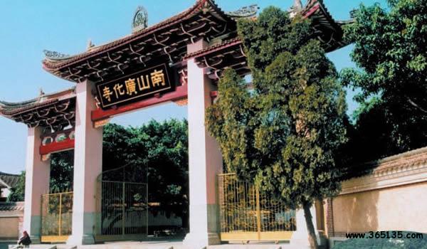 南山廣化寺:座落在城南鳳凰山,F(xiàn)行建筑群是清光緒初年依舊制重修的,從20世紀(jì)80年代開(kāi)始,進(jìn)行了大規(guī)模的擴(kuò)建。山門照壁上有中國(guó)佛教會(huì)已故會(huì)長(zhǎng)趙樸初題寫的“莊嚴(yán)國(guó)土,利樂(lè)有情”。廣化寺占地3.2萬(wàn)多平方米,建筑物面積1.7萬(wàn)平方米。踏入山門,沿著中軸線建筑拾級(jí)而上,全長(zhǎng)385米。依次是照壁、牌坊、山門、放生池、彌勒殿(天王殿)、大雄寶殿、法堂(上為藏經(jīng)閣)、臥佛殿(下為祖堂);兩側(cè)翼建有寬敞的石柱廊廡,東側(cè)次第為東羅漢殿、鐘樓、五觀堂、伽藍(lán)殿、尊客堂、水云鄉(xiāng)、圓通門、溪聲閣;西側(cè)次第為西羅漢殿、鼓樓、學(xué)戒堂、祖師殿、凈行堂(念佛堂)、煙霞窟、方丈室、看山樓。寺后東西兩角的最高處,分別聳立著觀音閣和小南山。南山上有幾十株不知年代的蒼松翠柏。