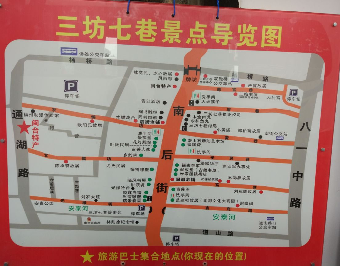 福州南后街北起楊橋路口,南至吉庇路達(dá)澳門橋,全長(zhǎng)1000米左右,是福州城內(nèi)“三坊七巷”的中軸。它的東側(cè)有七巷,西側(cè)有三坊,是從福州三坊七巷興起至民國(guó)期間主要的商業(yè)街,由北到南路面商賈云集。