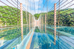 步步驚心是位于雙層極限玻璃懸橋下方的一項(xiàng)極限挑戰(zhàn)項(xiàng)目,由41塊彩色全透明玻璃鋪設(shè)而成,玻璃間隔均大于日常步伐,游客依靠安全繩跨越全透明玻璃踏板,是一步一驚心的高空極限挑戰(zhàn)。