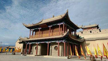建于明正德元年(1506年),由時(shí)任肅州兵備副憲李端澄主持修建。“光化樓”為三層三檐歇山頂式結(jié)構(gòu),樓高17米。精雕細(xì)刻,五彩裝成。樓閣第一層為磚木結(jié)構(gòu),第二、三層是木結(jié)構(gòu)榫卯咬合而成,雖經(jīng)歷了近五百年的風(fēng)風(fēng)雨雨及地震等自然災(zāi)害,仍巍然屹立于關(guān)城之上。