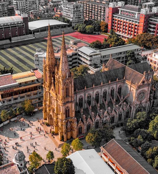 石室圣心大教堂,是天主教廣州教區(qū)最大教堂,國內(nèi)現(xiàn)存最宏偉的雙尖塔哥特式建筑之一,也是全球四座全石結(jié)構(gòu)哥特式教堂建筑之一(另外三座是巴黎圣母院、威斯敏斯特教堂、科隆大教堂),由于教堂的全部墻壁和柱子都是用花崗巖石砌造,所以又稱之為“石室”或“石室耶穌圣心堂”、“石室天主教堂”。是廣東省重點(diǎn)文物保護(hù)單位。