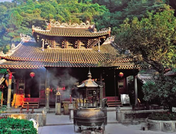 二絕:寺里最壯觀的主殿是大雄寶殿,殿內(nèi)經(jīng)常香煙鼎盛,但卻終年空氣潔凈,沒有香煙薰人。傳說是因?yàn)榈铐數(shù)脑寰鸬淖饔谩?/p>