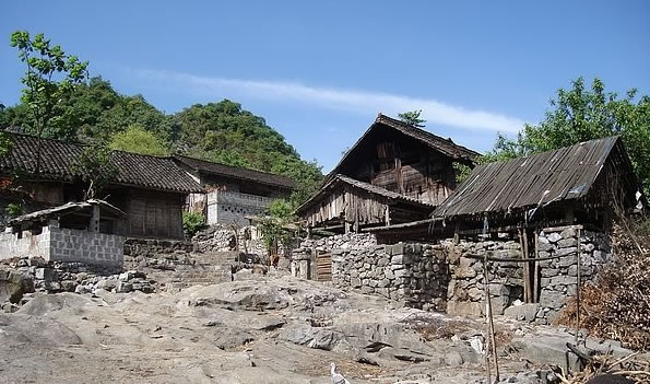 張家寨位于德峨鄉(xiāng)西南部,距隆林縣城37千米,是一個具有濃郁民族建筑特色的村寨,是隆林苗族居住文化的典型代表,居民主要為偏苗。寨子背靠青山石壁,寨內(nèi)房屋全為竹木結(jié)構(gòu)的平房與吊腳樓。