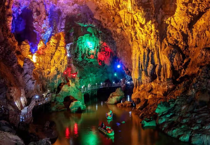 廣西平果通天河景區(qū)又稱“敢沫巖”、“紅軍巖”,是一個溶洞暗河型景區(qū),位于廣西百色市平果縣黎明鄉(xiāng)208省道旁。溶洞最大特點(diǎn)是面積大,總面積超過10萬平方米,其中“天上人間”面積3.3萬平方米;空氣好,6處洞口空氣通暢;空間高,最高的“九九洞天”99米;景點(diǎn)多,石筍、石柱、石幔、石瀑、石盾、石梯田、石鐘乳千姿百態(tài),鬼斧神工,20米以上石柱26余根;景觀奇,“神奇龍脊”長達(dá)60多米,鎮(zhèn)洞之寶“金銀雙塔”各高達(dá)30多米。通天河景區(qū)于2013年被評為國家AAAA景區(qū)。景區(qū)位于廣西西南部中心地帶,東距大化紅水河28公里,可連接大化七百弄等景點(diǎn);北距巴馬縣63公里,208省道直達(dá),適合與巴馬連線旅游,可連接“東巴鳳”各景點(diǎn);西可連接百色、德天瀑布、通靈大峽谷等景點(diǎn);南距南寧190公里,可連接南寧、北海等景點(diǎn)。