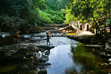 抵達(dá)景區(qū)后,乘木船游覽龍珠湖(自費(fèi),10元/人;30分鐘);到餐館吃中餐(1小時(shí));然后在竹林、亞熱帶風(fēng)情林漫步,吸氧,感受原始森林的清新氣息(20分鐘)到了石橋,游人可照相留影、觀山溪野魚(yú)(15分鐘)再走10分鐘,即可到達(dá)第一個(gè)山泉沐浴點(diǎn)仙女池,傳說(shuō)其水能使肌膚更加細(xì)膩嫩滑,最適合女性沐浴。(40分鐘)。