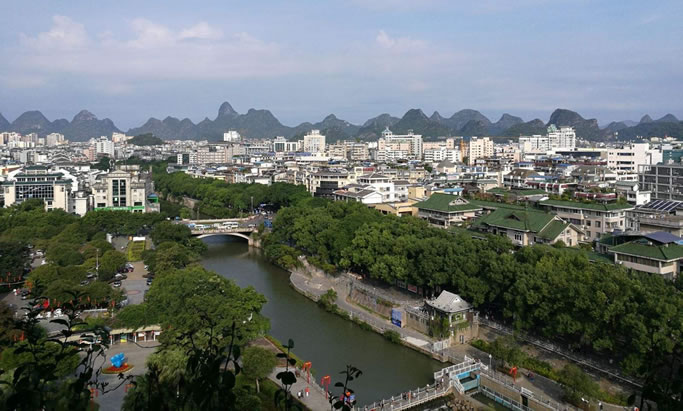 水文 象山區(qū)主要有漓江、桃花江、相思江、寧遠(yuǎn)河、南溪,以及杉湖,是桂林市“兩江四湖”環(huán)城水系工程、大型旅游景區(qū)重要組成部分。此外,在溶蝕、沖積平原中還分布著一些大小不一的河流、湖泊,如由萬福潭沿上月山、佛殿村流入相思江的佛殿河,由芬塘村經(jīng)桂林市園藝場流入相思江的牛過河等。