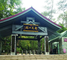 桂平西山新山門典雅大氣,別具一格,與山連體,與名流揚(yáng),爭(zhēng)相輝映。新山門名曰《南天一閬》,由桂平籍當(dāng)代著名書法家蒙漢良題寫 ,兩邊對(duì)聯(lián)是意味深長(zhǎng)、文辭雋永之90字長(zhǎng)聯(lián),乃民國(guó)孔文軒、鄒魯兩人合作。20世紀(jì)20年代初,孫中山從粵赴邕演講,路經(jīng)桂平上西山,宴席上,孔文軒出一上聯(lián)云:“蒼梧偏東,邕寧偏南,桂林偏北,惟此地前列平原,后橫峻嶺,左黔右郁,匯交廿四江河,靈氣集中樞,人挺英才天設(shè)險(xiǎn);”并戲言若眾人應(yīng)答不出下聯(lián)則不得開宴。孫中山的秘書鄒魯略經(jīng)思考,從容應(yīng)答出下聯(lián):“洗石有庵,乳泉有亭,吏隱有洞,最妙處茶稱老樹,柳紀(jì)半青,文閣慈巖,掩映十八羅漢,游蹤來絕頂,眼低層塔足凌云!贝松下(lián)寫西山形勝,下聯(lián)寫西山具體勝跡。下聯(lián)以纖柔對(duì)上聯(lián)的雄渾,為西山增添不少雅韻,令世人爭(zhēng)相吟誦不已!