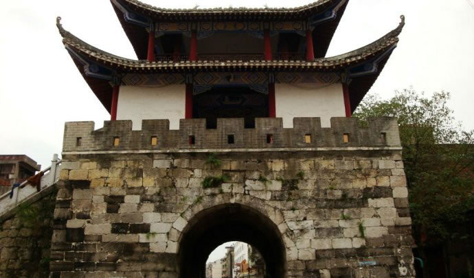 四牌樓,位于宜州區(qū)一中東側(cè),建于乾隆二十五年,時稱“會魁樓”,又稱“四牌樓”。此樓位于十字路口,形成東西南北四個門洞,內(nèi)外相通。四牌樓樓高三層,一樓全用大型細(xì)鑿條石砌成,呈四方形,工藝精巧。邊長11.5米,四面拱門各高3.9米,寬3.5米。二三樓為木質(zhì)結(jié)構(gòu)的重檐樓閣,紅漆圓柱,飛彩流丹,古樸莊重。“文革”中二三樓被拆毀,只存有一樓拱洞石門,樓上建筑及額匾碑刻已不復(fù)存在。