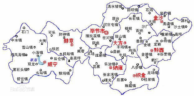 畢節(jié)市轄1個區(qū)、6個縣,代管1個縣級市:
