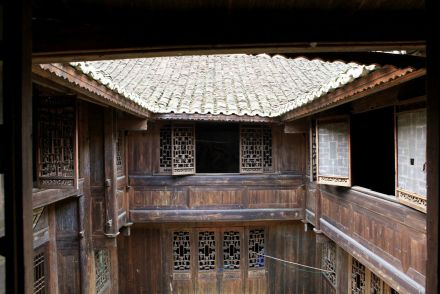 陶家院位于古城東北角,是清末木商陶明哲的住宅,為三間搭兩廂型建筑,四周圍高風(fēng)火墻,天井鋪青石板,窗扇均為雕刻精美的木板花窗,上面雕有精致的鳥(niǎo)獸,其中的鏤空玲瓏木板雕鏤更為奇特,書(shū)房?jī)?nèi)有壁畫(huà),家具陳設(shè)完全,工藝精良,裝飾典雅,屋前建有門樓及防火石缸,是古城最有代表性和保存最完好的古民居建筑。
