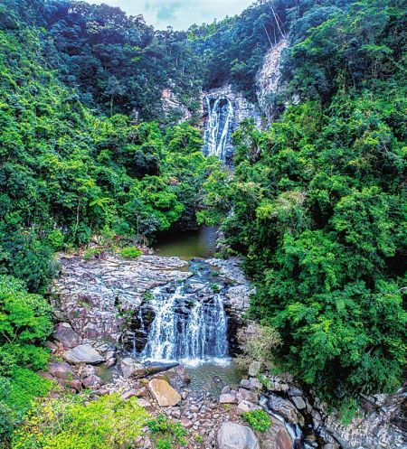 紅坎瀑布位于白沙黎族自治縣元門鄉(xiāng)東南部,距縣城24公里處。 紅坎瀑布總落差145米。瀑布源于海拔1101米的紅坎嶺,兩岸峰巒矗立,絕壁橫陳,溶巖密布。