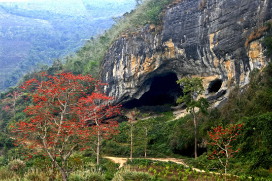 皇帝洞位于昌江黎族自治縣南部王下鄉(xiāng)牙迫村南瑤河畔的五勒嶺下,距縣城石祿鎮(zhèn)60余千米。洞寬約60米,深約130米,高25米,面積約7800平方米,可容納上萬(wàn)人。