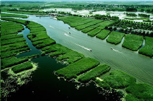 安新白洋淀景區(qū)的地形地貌是由海而湖,由湖而陸的反復演變而形成的,白洋淀的水域構造獨特,它既有異于中國南方的內陸湖泊,又不同于北方的人工水庫,它不是連在一起的一片汪洋,而是由多條河流將各個淀泊連在一起,從而形成河淀相連,蘆蕩蓮塘星羅棋布,一個個淀泊既相互分割又相互聯(lián)結的布局。