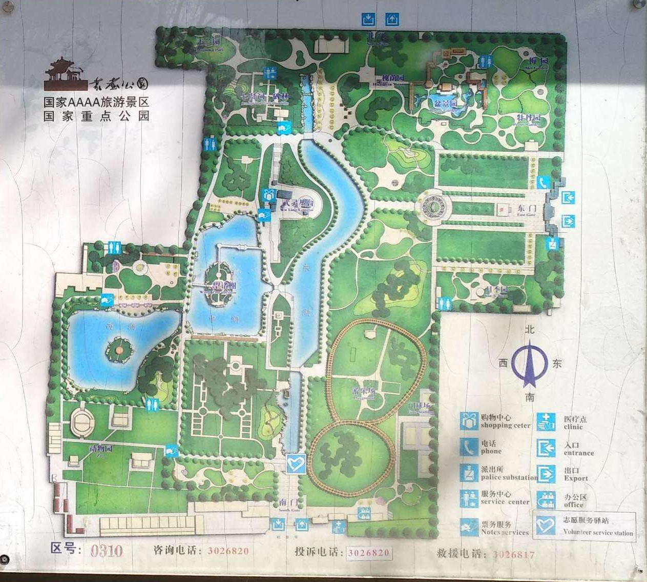 在雪松外是花圃地,主路北邊自東向西依次分布著牡丹園、梅園、盆景園、槐萌園、七賢祠、邯鄲碑林、玉蘭園。主路南邊是自東向西分布著月季園、山幽苑,山幽苑往南以前是游樂場和小吃城,后改為武靈廣場和敬候廣場、花園廣場,亭臺(tái)樓閣遍布其中。