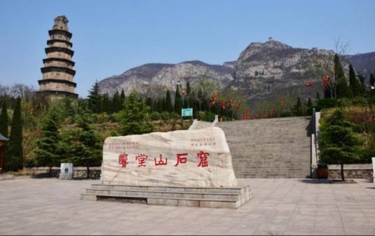 響堂山石窟,又稱響堂寺石窟,位于河北省邯鄲市峰峰礦區(qū)。最初開鑿于北齊時(shí)代(公元550—577年)。以后,隋、唐、宋、元、明各代均有增鑿。尚有石窟16座,4000多尊雕像,石窟均營(yíng)鑿在山清水秀、環(huán)境優(yōu)美的鼓山最優(yōu)質(zhì)的石巖中。石窟幽深,人們?cè)谏蕉蠢飺粽扑π洌寄馨l(fā)出洪亮的回聲,故名“響堂”。