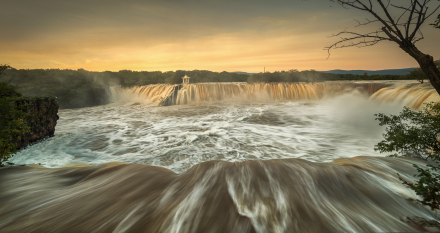吊水樓瀑布位于鏡泊湖北頭。是景區(qū)的特級自然景源(世界級),酷似聞名世界的“尼亞加拉大瀑布”。平水期時,瀑布一般幅寬五六十米,落差十二米。但在汛期,最高落差僅十余米,瀑布最大幅寬可達(dá)四百余米,從南、西、北三個方向以排山倒海之勢從熔巖壁頂直撲黑龍?zhí)。似浮云堆雪,白霧四濺,百米之外,水珠鋪面;又似銀河倒掛,彩練懸崖,奔騰咆哮,聲如奔雷。與貴洲的黃果樹瀑布、黃河壺口瀑布、九寨溝諾日朗瀑布、臺灣的文龍瀑布、廬山的三疊泉瀑布并稱中國六大名瀑。