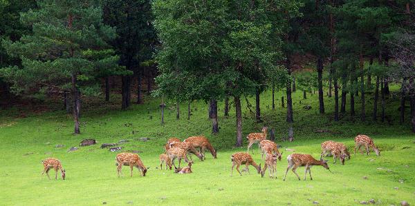 金山鹿苑位于鶴伊公路75公里處,距離金林區(qū)局址7公里處,占地面積764公里。這里溪流淙淙、綠草如茵,群山環(huán)抱、景色怡人,歐陸風(fēng)韻盡顯其中,酷似天然的高爾夫球場(chǎng)。現(xiàn)有梅花鹿、馬鹿等珍貴鹿種。是AAA級(jí)國(guó)家旅游景區(qū)。 金山鹿苑之所以稱為天然鹿苑,主要是這里采用人工飼養(yǎng)與自然放牧相結(jié)合的半牧式養(yǎng)殖方式飼養(yǎng)鹿群,既保護(hù)了鹿種的天然野性,又提高了鹿種的繁殖能力和經(jīng)濟(jì)價(jià)值。金山鹿苑已成為我區(qū)種鹿繁育、技術(shù)服務(wù)推廣、鹿產(chǎn)品精深加工、銷售、旅游、科研開發(fā)基地。 金山鹿苑其景色優(yōu)美,每年都吸引大量游客前來(lái)旅游觀光。2002年中央“心連心”藝術(shù)團(tuán)曾在此設(shè)立分會(huì)場(chǎng)進(jìn)行慰問(wèn)演出。是歷屆中國(guó)·伊春市小興安嶺森林節(jié)必選觀光路線,曾是伊春旅游形象片《綠色伊春》和伊春市歌《林都伊春》主要拍攝場(chǎng)地。2009年接待過(guò)35個(gè)駐我國(guó)大使、參贊和夫人,國(guó)內(nèi)、國(guó)際聲望遠(yuǎn)播。