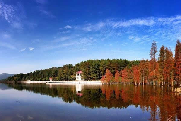 10:10知音谷林蔭小道,光影斑駁,曲徑通幽,桃李爭艷、迎春花黃,爛漫花事,溪流潺潺。瀏撫琴石,子期草廬,試斧石,山人居,聆聽“高山流水遇知音”的唯美故事,感受千年前俞伯牙與鐘子期的真摯友情。登扶云梯,攀江漢平原第一高峰——龍霓山,鎖情臺開天下第一同心鎖。楚望亭遠(yuǎn)眺山鄉(xiāng)田園風(fēng)光。森林穿越,過九真關(guān);行琴人谷,詩竹軒看春筍破土,翠竹拔節(jié),氧浴竹海。賞當(dāng)?shù)孛視。過九曲橋,徜徉山水之間。鴛鴦壩下高爾夫球場瀟灑揮桿(自費(fèi)),體驗貴族運(yùn)動的高雅情趣。賞連理湖美景,青山秀水,滿山含翠。檫木花開,嫩黃朵朵,猶如繁星點(diǎn)綴在山野之間。