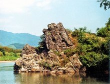 龍腦石又稱石龍鼓,位于陵前斜獺水水岸的炎帝陵桃源洞國家自然保護(hù)區(qū),巨石臨江,狀似龍首,江水奔注噴薄。傳說當(dāng)年炎帝靈柩水運(yùn)至此,傾盆大雨,江水翻騰,一陣湍急旋渦,將炎帝靈柩沉入水底,卷入石穴。原來是水中的金龍為感炎帝救治之恩遂躍出水面,將炎帝請(qǐng)至龍宮作客。后來天上玉帝為懲罰金龍無理,用圣旨罰金龍化為石龍。龍頭化為龍腦石,龍爪化為龍爪石。至今龍腦石、龍爪石風(fēng)韻猶存,巨龍首兀立江面,栩栩如生,秀色可餐,風(fēng)景迷人,為炎陵自然勝景。