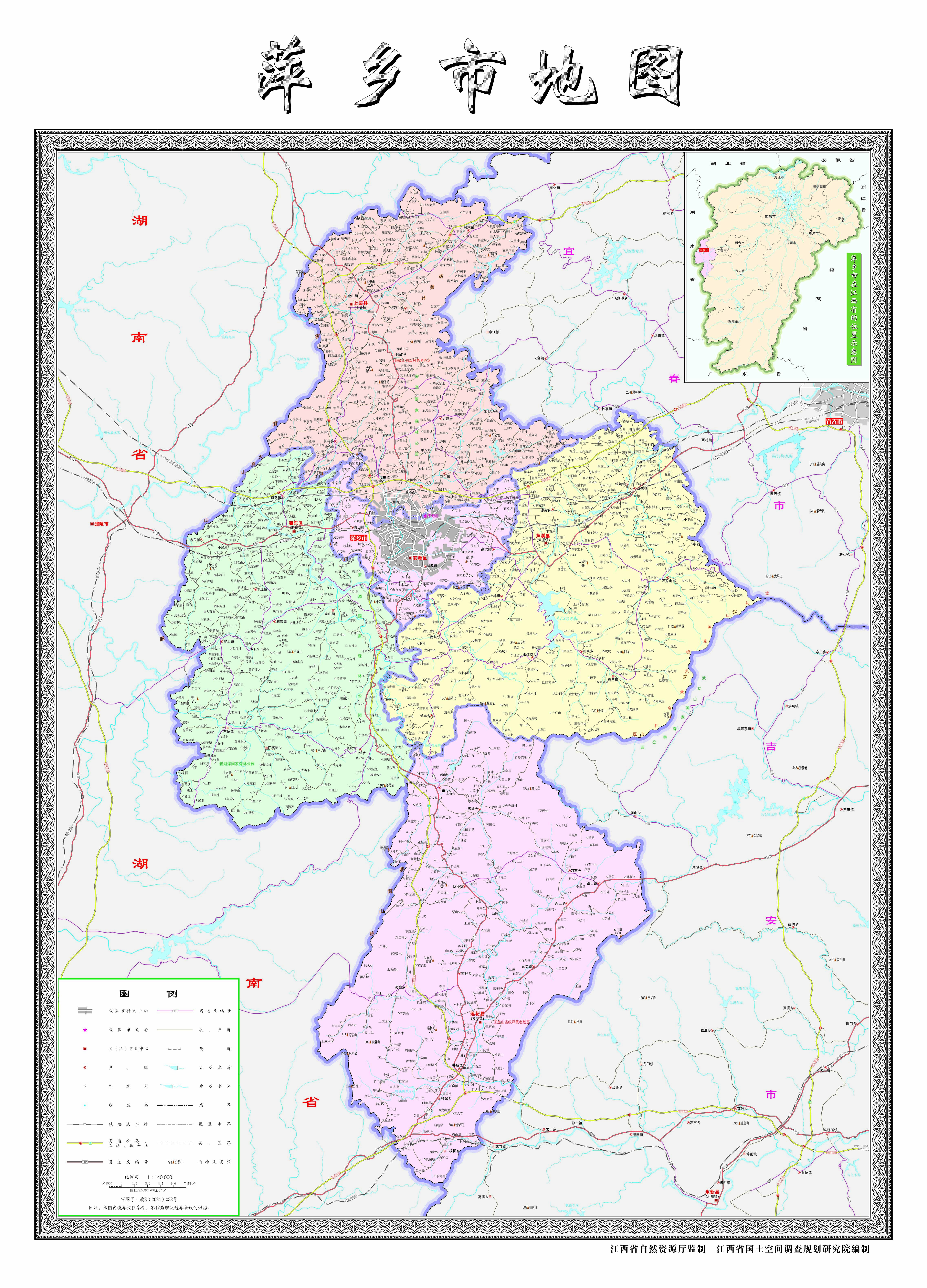 萍鄉(xiāng)市轄2個市轄區(qū),3個縣: