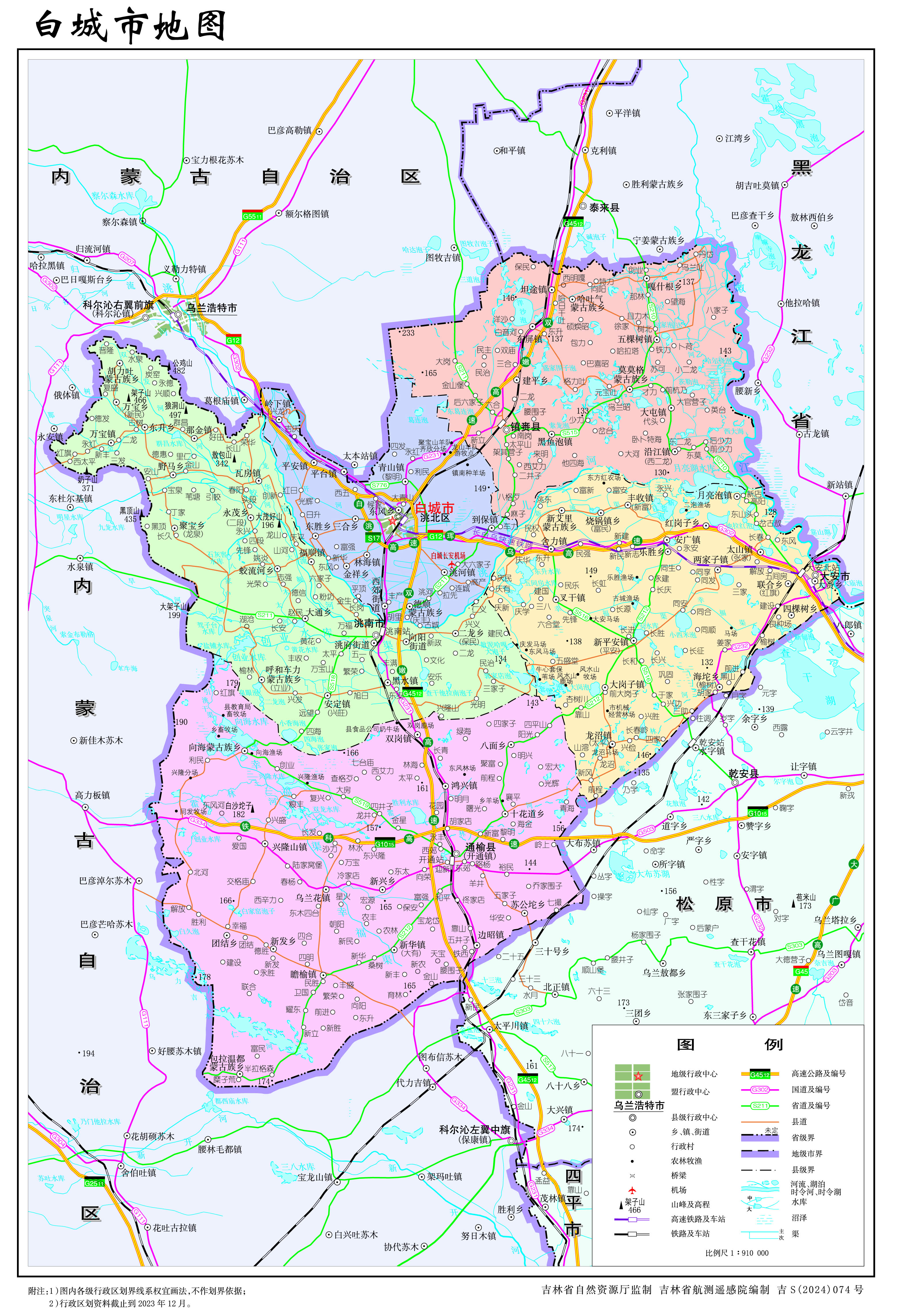 白城市轄1個(gè)市轄區(qū)、2個(gè)縣,代管2個(gè)縣級(jí)市: