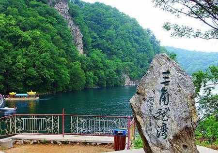 三角龍灣又名黑龍?zhí),傳說有一條三只角的黑龍距此修煉,經(jīng)常行云布雨,除惡降魔,普濟(jì)四方百姓,后來黑龍飛往長(zhǎng)白山天池,龍去留淵,留有一灣圣水。位于輝南城朝陽鎮(zhèn)東南45公里處的高山密林之中。系古代火山噴發(fā)口積水而成,因水面呈三角形,加之湖南側(cè)矗立著30米高的三角石,故名“三角龍灣”。是進(jìn)入長(zhǎng)白山的門戶之一。這里自古以來風(fēng)光秀美,景色迷人。我國(guó)著名第二大火山群—龍崗火山群就分布在這里。