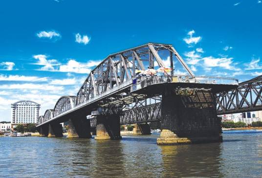 鴨綠江斷橋,位于中國遼寧省丹東市振興區(qū)江岸路鴨綠江畔,是原鴨綠江大橋被炸毀后的殘余部分,是國家AAAA級景區(qū)鴨綠江風(fēng)景名勝區(qū)重要的標(biāo)志性建筑。鴨綠江斷橋為12孔可開閉式鐵路橋,橋長944.2米,寬11米,12孔,其中第4孔為“開閉梁”,可旋轉(zhuǎn)開合。