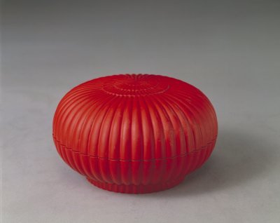 乾隆款朱漆菊瓣盒:此盒制作于清乾隆四十一年,朱漆菊瓣形蓋盒。盒通體髹朱漆,底足內(nèi)黑漆地用金漆書“乾隆年制”篆字款。款周圍有金漆隸書乾隆御題五言律詩一首“髹作法前明,踵增制越精。攢英如菊秀,一朵比花輕。把手初無覺,映心似有情。設(shè)云十人諫,慚愧不期生。乾隆丙申仲春月御題”,尾鈐“德”描金篆字印章款。這是一件乾隆年制造的脫胎漆器,造型規(guī)整,漆色潤澤。是皇宮中御用珍品。