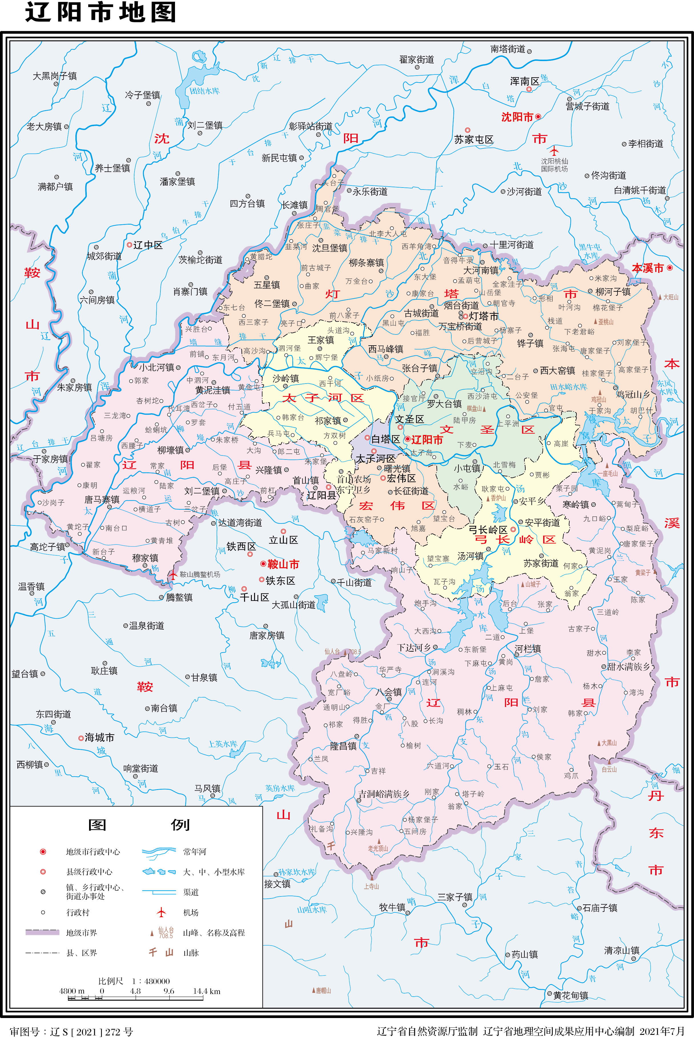 遼陽(yáng)市轄5個(gè)市轄區(qū)、1個(gè)縣,代管1個(gè)縣級(jí)市: