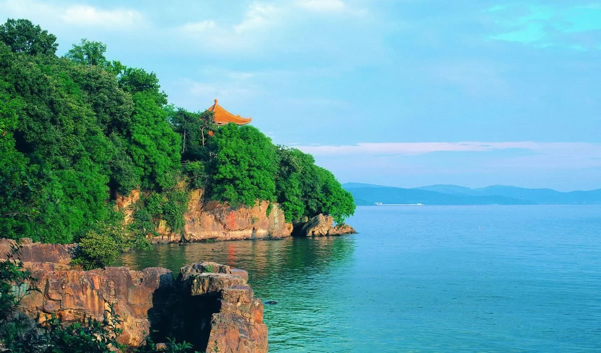 黿頭渚位于太湖西北岸無錫境內(nèi),因巨石突入湖中形似神龜昂首而得名,面積達5.39平方公里,是太湖風(fēng)景名勝區(qū)的主景點之一。其歷史可追溯至南朝蕭梁時期,現(xiàn)存“廣福庵”等古跡,清末無錫知縣廖倫題刻“包孕吳越”摩崖石刻,贊頌其兼納吳越山水的雄渾與清秀。郭沫若曾題詩“太湖佳絕處,畢竟在黿頭”,使其名揚海內(nèi)外。