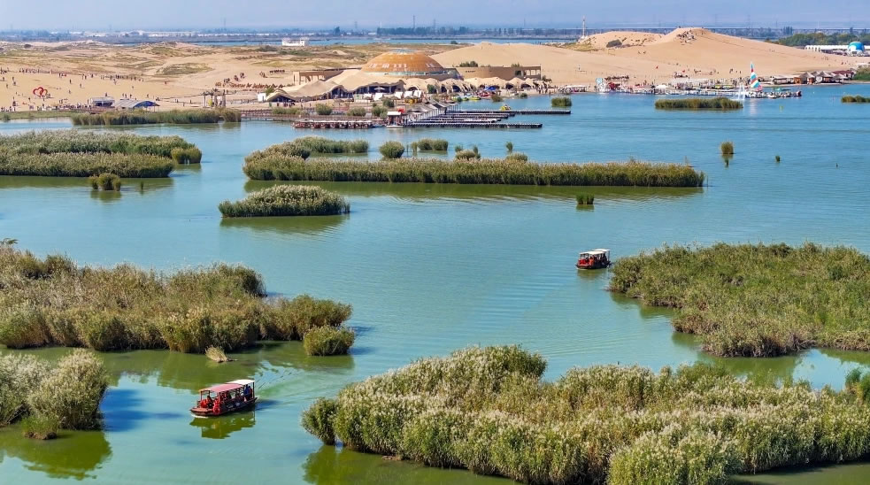 - 自然與人文特色:國家AAAAA級旅游景區(qū),以沙水相依的獨(dú)特景觀和豐富的生態(tài)資源著稱。沙湖旅游景區(qū)是一處融合了江南水鄉(xiāng)之靈秀與塞北大漠之雄渾的“絲路驛站”上的旅游明珠,擁有萬畝水域、五千畝沙丘、兩千畝蘆葦、千畝荷池,盛產(chǎn)魚類、鳥類,棲息著十多種珍稀鳥類。