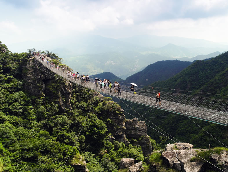 - 鏤空鐵索橋:中國第一鵲橋,全長168米,垂直高度398米。