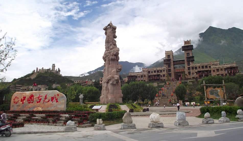 中國(guó)古羌城位于四川省阿壩藏族羌族自治州茂縣鳳儀鎮(zhèn)。地處岷江西岸金龜包、銀龜包之間,坐西朝東,背靠水西,腳抵岷江,面向九鼎圣山,頭枕藍(lán)天白云,莊嚴(yán)雄偉,氣勢(shì)恢宏。中國(guó)古羌城占地3000余畝,規(guī)劃面積215萬(wàn)平方米,建筑面積為25萬(wàn)平方米,建筑基礎(chǔ)面積14萬(wàn)平方米。由12個(gè)組團(tuán)組成。中國(guó)古羌城保持羌族原有的建筑風(fēng)貌、民風(fēng)民俗、祭祀禮儀,充分體現(xiàn)羌文化的原生態(tài)環(huán)境和羌民族的生息特點(diǎn),是中國(guó)乃至世界的羌族文化活態(tài)展示、展演區(qū)及文化休閑、體驗(yàn)旅游目的地。中國(guó)古羌城在2008年汶川地震中損毀嚴(yán)重,為恢復(fù)古城原貌,保留少數(shù)民族傳統(tǒng)文化、古羌族文化,國(guó)家投入大量資金進(jìn)行了重建,F(xiàn)古羌城為重建后樣式。