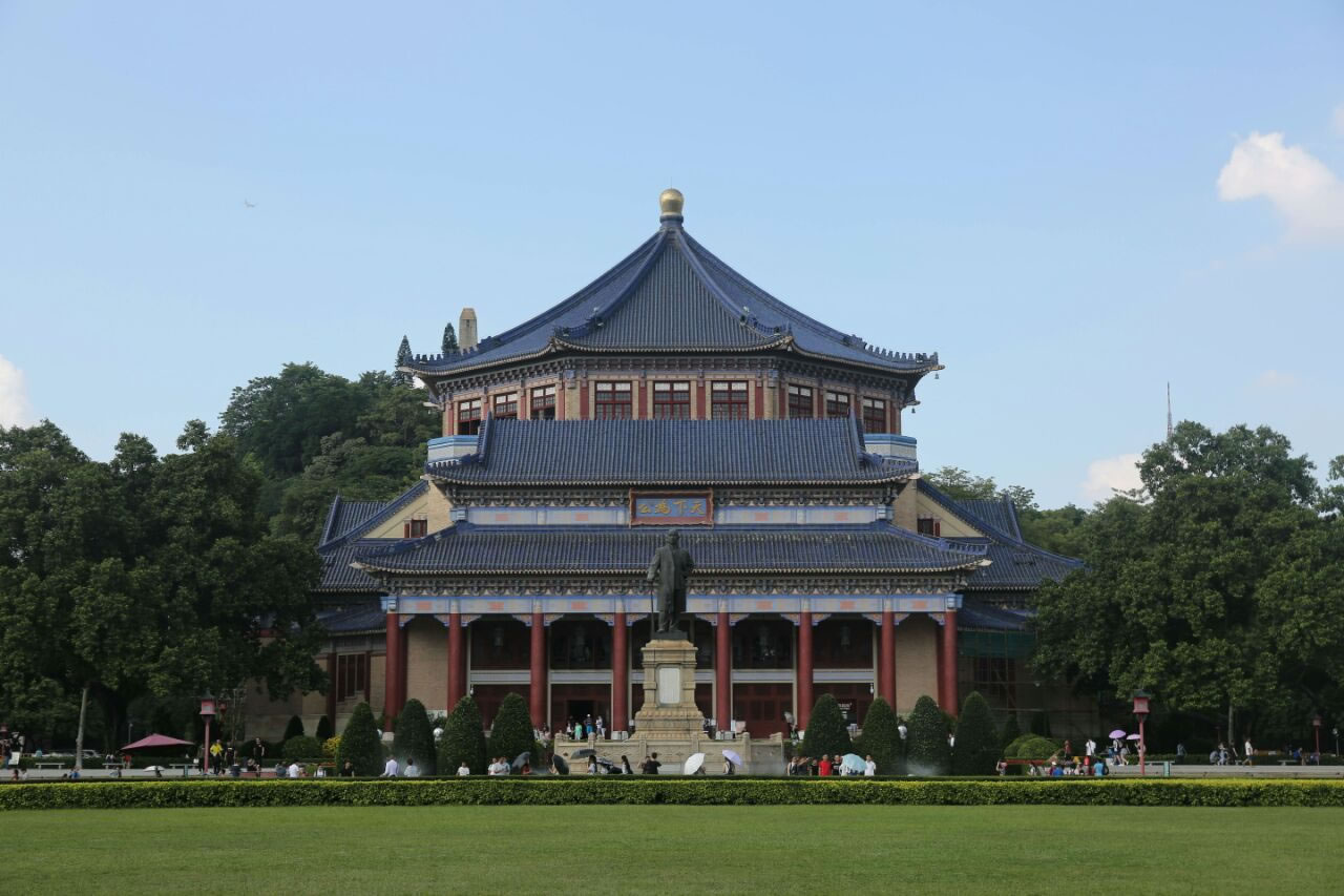 廣州中山紀(jì)念堂,位于廣東省廣州市越秀區(qū)東風(fēng)中路299號,是廣州人民和海外華僑為紀(jì)念孫中山先生集資興建的。民國十八年(1929年)動工,民國二十年(1931年)竣工。中山紀(jì)念堂坐落于孫中山先生當(dāng)年的總統(tǒng)府舊址上,總占地面積為6.3公頃。廣州中山紀(jì)念堂是廣州最具標(biāo)志性的建筑物之一,是中國傳統(tǒng)建筑風(fēng)格與西方建筑結(jié)構(gòu)完美結(jié)合的典范。主體建筑占地1.2萬平方米,高52米,是一座八角形古宮殿式建筑。它采用鋼桁架和鋼筋混凝土結(jié)構(gòu),由前后左右四個宮殿式重檐歇山抱廈建筑組成。堂頂鑲蓋寶藍(lán)色的琉璃瓦,瓦面分高低四層,層層飛檐出卷。大堂內(nèi)跨度達(dá)71米的建筑空間內(nèi)不設(shè)一柱,氣勢恢宏,富麗堂皇。
