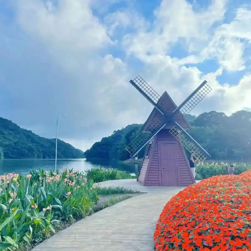 石灶天池:公園的精華所在,天池旁種植了不同季節(jié)的花卉,形成震撼的七彩天池花海,是拍照圣地。