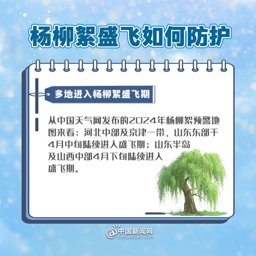 從中國天氣網(wǎng)發(fā)布的2024年楊柳絮預(yù)警地圖來看:河北中部及京津一帶、山東東部于4月中旬陸續(xù)進(jìn)入盛飛期;山東半島及山西中部4月下旬陸續(xù)進(jìn)入盛飛期。楊柳絮都有哪些危害?公眾日常如何做好防護(hù)?
