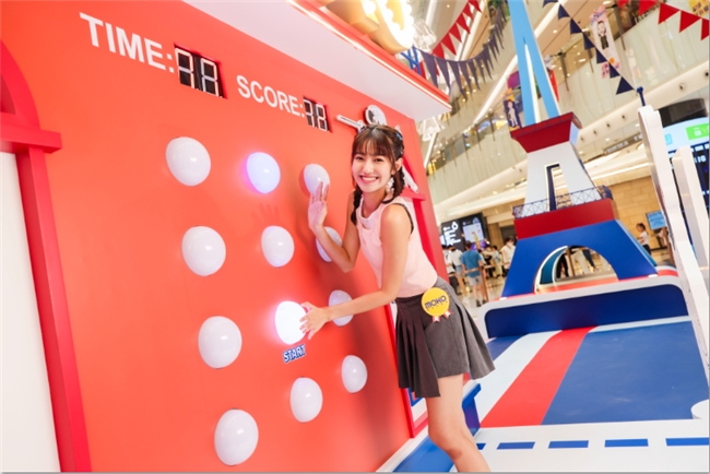 4.7米高的紅磨坊那極具標(biāo)志性的紅色配上璀璨金色亮燈MOKO字樣,非常的搶眼。紅磨坊前設(shè)置擊劍場,由“無敵劍神”及“世一劍后”坐陣,邀請(qǐng)游客參與這場反應(yīng)與速度的挑戰(zhàn),游戲限時(shí)30秒,隨著墻上拍拍燈隨機(jī)亮起,每按下一盞亮燈即可得分,讓游客在充滿歡樂的挑戰(zhàn)中,看看自己是否有成為新一代劍神劍后的實(shí)力。