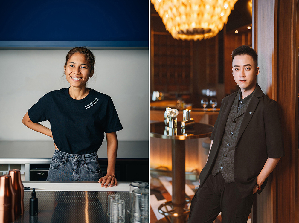 Sasha (左) 是Fura 的合伙人及調(diào)酒師,她一向追尋以創(chuàng)新的方式融合各種食材,制作出風(fēng)味獨特又環(huán)保的飲品。 澳門新濠影匯W酒店首席調(diào)酒師Samio (右) 獨具匠心,致力于以不同構(gòu)思設(shè)計出令人驚嘆的作品,期望每一杯飲品都能為賓客帶來難忘的體驗。