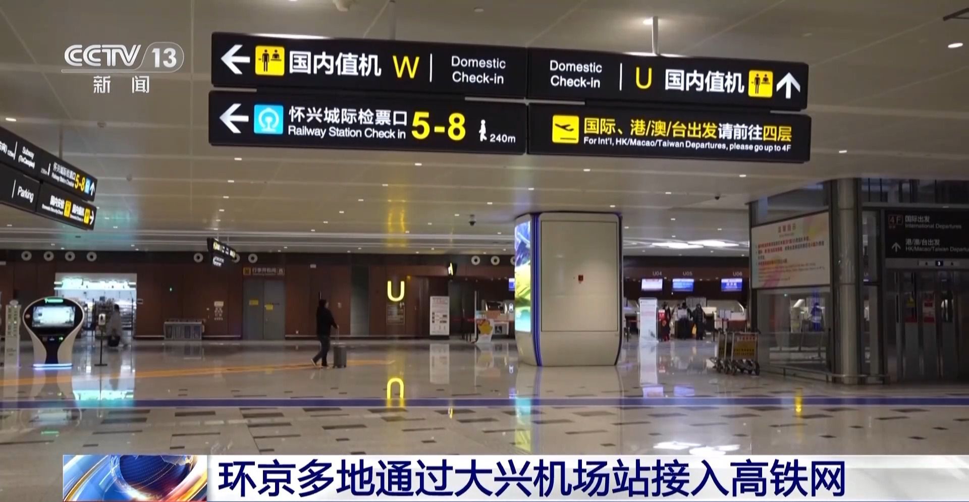 北京大興國際機場公共區(qū)管理部業(yè)務經(jīng)理 焦永杰:為加強城際鐵路大興機場站與大興機場的信息共享,我們將列車動態(tài)信息顯示前置航站樓。后期大興機場與鐵路部門將繼續(xù)加強業(yè)務互動與信息共享,持續(xù)提升列車與航班在運力、時刻方面的匹配度。