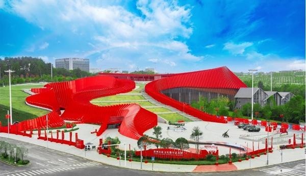 貴州長(zhǎng)征文化數(shù)字藝術(shù)館(紅飄帶)建筑外觀,該建筑以“地球的紅飄帶”為主題,外觀設(shè)計(jì)參考“中央紅軍長(zhǎng)征路線圖”。